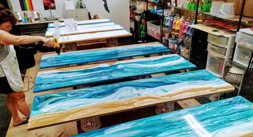 The natural beauty of Amelia Island inspires the artist in all of us, but some of us need a little brushing up on our skills! Head back to the beginning at The Julie Delfs Gallery, where Adult Kindergarten Class is going to teach you the basics of Resin-Epoxy. You’ll make big kid decisions like choosing your colors and how to safely play with your friends.