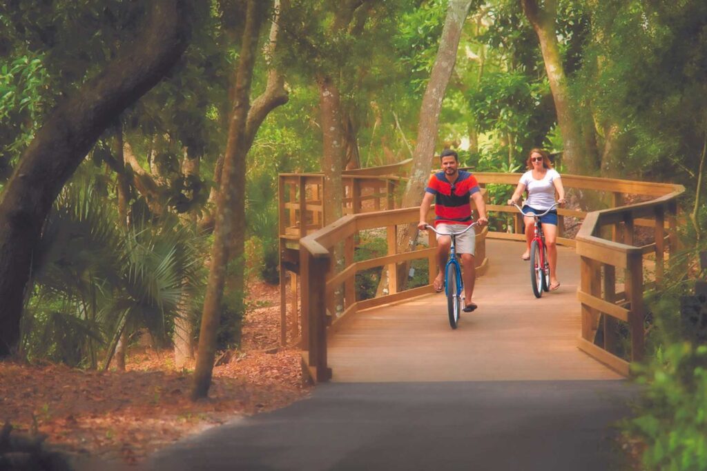 Amelia Island is home to enough trails and paths to give you a change of scenery each day. Egan’s Creek Greenway trail is a special ride to view nature at its finest, and the Amelia Island Trail system allows you to bike over 5 miles from Peters Point Beachfront Park all the way to Amelia Island State Park on the island’s south end. Bike Amelia can help you with a rental and even deliver them right to your hotel.