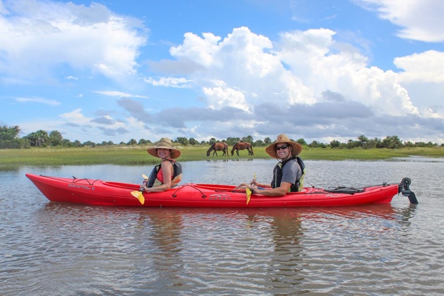 Embark on a one-of-a-kind Valentine’s adventure with your partner on an Amelia Adventures Kayak Tour! Paddle along an iconic waterway exploring the scenic route past Fort Clinch State Park and the Amelia Island Lighthouse. Let the tide guide you downstream past historic Old Town until you reach the white sandy beaches of Tiger Island. From here, take a serene moment to relax before witnessing a gorgeous Florida sunset. Ahhh…it’s the perfect blend of adventure and romance for an unforgettable experience.
